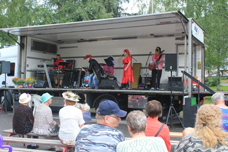 ![]() Five Cometsin pojat kahvitauolla | ![]() Lavalla Hot Stuff Jazz yhtye |
