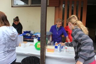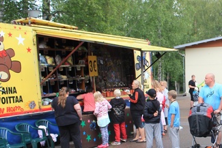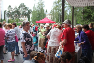 ![]() Yleisöä | ![]() Anna-Liisa arpajaispisteessä |
