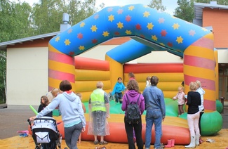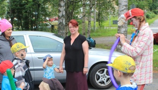 ![]() Pomppulinnassa | ![]() Riesapelle vääntelee lapsille ilmapalloja |