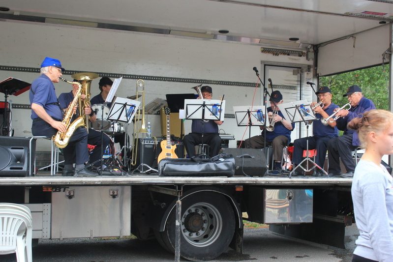 ![]() Five Cometsin pojat kahvitauolla | ![]() Lavalla Hot Stuff Jazz yhtye |