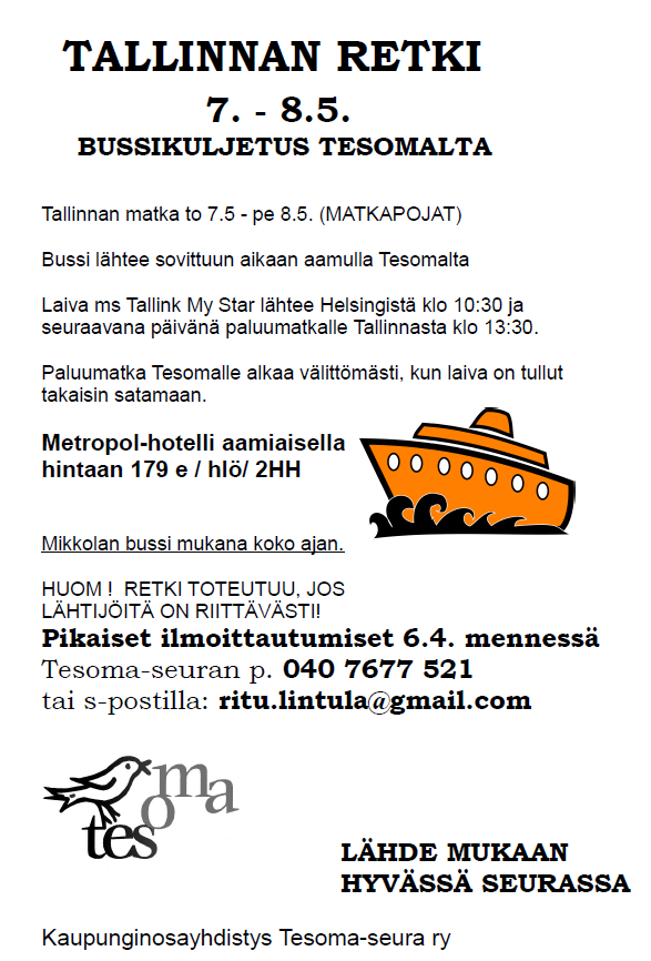 Tesoma-seuran kesäteatteriretki v. 2026