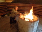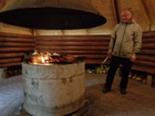 Kuvissa Anttilan Pasi paistaa makkaroita hämyisessä kodassa.