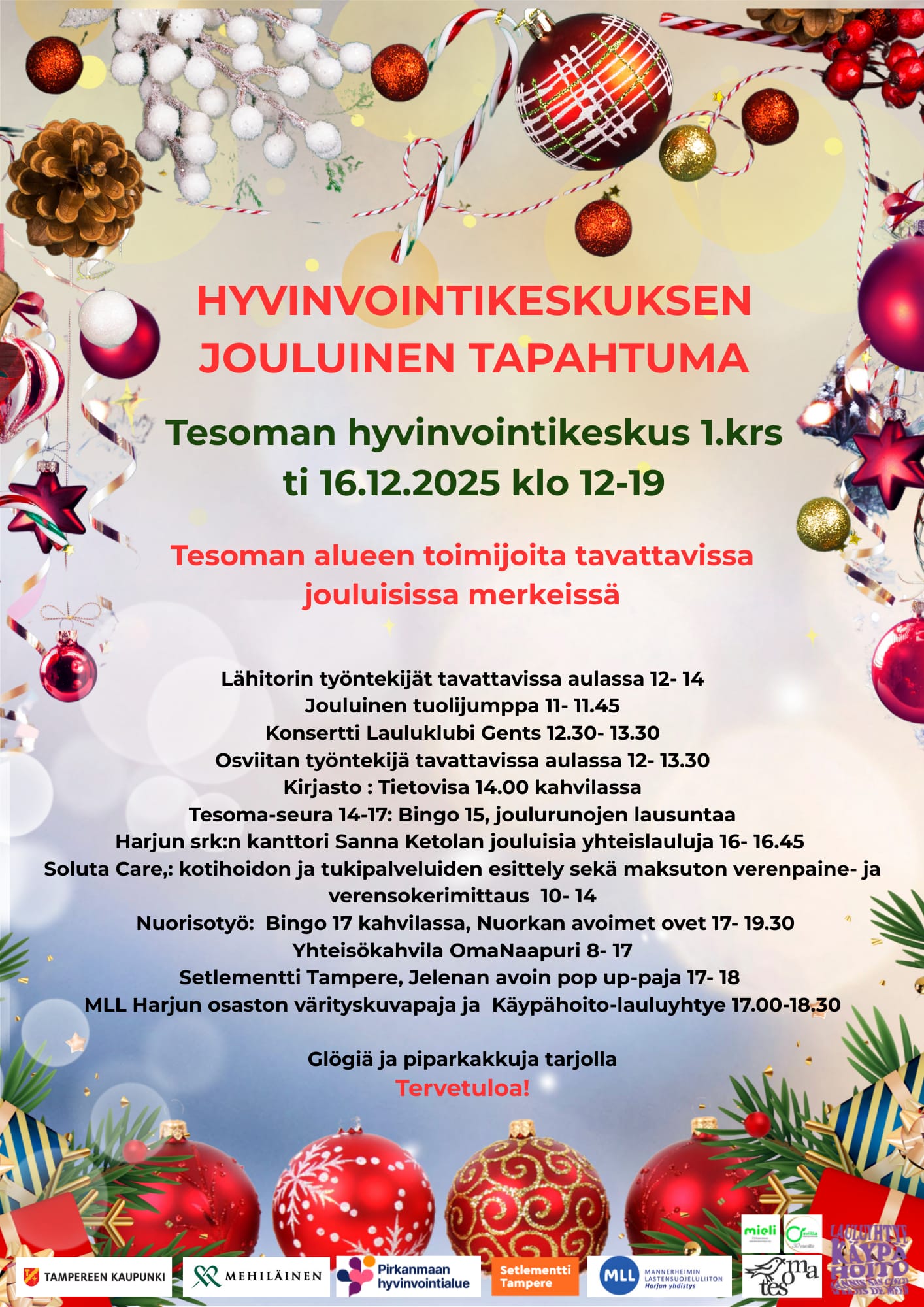 Hyvinvointikeskuksen jouluinen tapahtuma Klikkaa liitettä niin saat sen ssuuremmaksi. Tämä tilaisuus on sama kuin Joulutapahtima Hyvinvointikeskuksessa. Mainos vain saatiin myöhemmin.